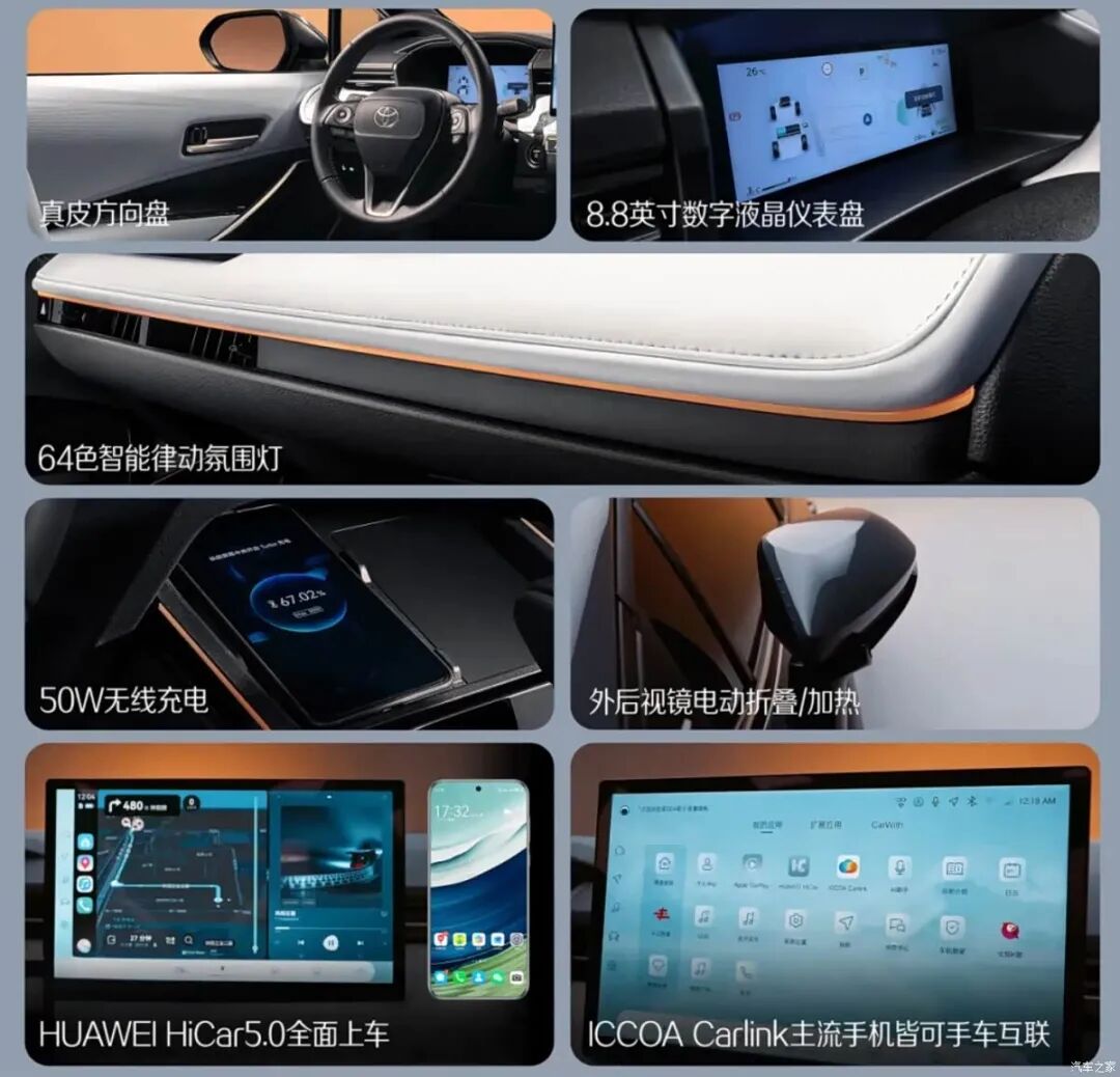 内饰采用全新的设计,空调出风口贯穿式样式,并引入64色律动氛围灯,升级搭载全新的8.8英寸数字液晶仪表盘,12.9英寸中控屏,拥有8155P车规级芯片。手机互联方面,新车配备HUAWEI HiCar 5.0、Carlink。中控台下方还有50W无线充电。新车座椅升级全新的一体式设计,高靠背云感亲肤座椅。新车还全系标配TSS 3.0智能驾驶辅助。