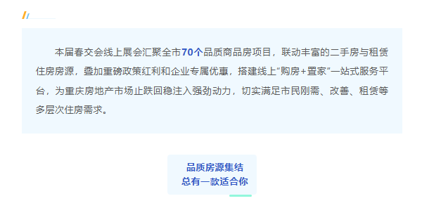 本届春交会采取线上线下联动展示,线下展会3月12日—15日在两江新区观音桥步行街举行,线上展会将持续至5月31日,期间线上平台将实时更新房源信息、优惠政策和活动动态。市民可通过渝房通平台、抖音等渠道参与展会,一站式享受看房、选房、咨询、申领优惠等全流程服务。