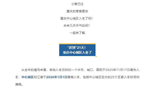 重庆中心城区入冬!未来几天抓紧晒太阳